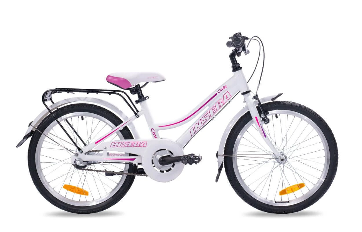 Insera Cindy on lapsille Suomessa suunniteltu alumiinirunkoinen polkupyörä. Shimanon 3 vaihteinen vaihteisto antaa mahdollisuuden pidemmillekkin perheen pyörälenkeille ja koulumatkoille. Rungon geometriassa on huomiotu lasten ruuminrakenne, jotta ajaminen on turvallista ja mukavaa. Jalkajarru takana sekä käsijarru edessä varmistaa nopean ja tasaisen jarrutuksen. Alumiinirunkonsa ansiosta pyörä on kevyt ja lapselle helppo hallittava. Heijastimet edessä, takana, polkimissa ja pinnoissa varmistavat lapsen näkyvyyden liikenteessä.